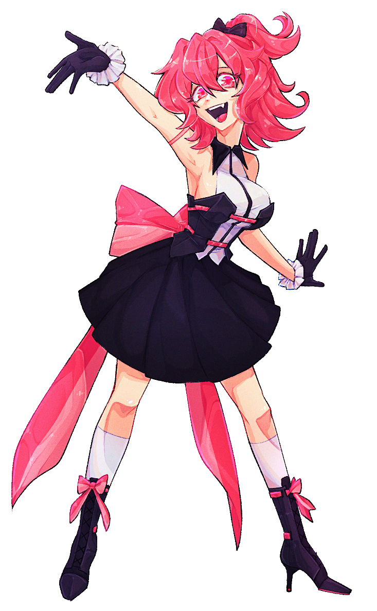 Lucky's design is based on an outfit CROW wore to a birthday party. (This + her voicebank style influenced her weredog breed, as the hairstyle + cute, sharp tone reminded CROW of the Yorkshire Terrier dogs)